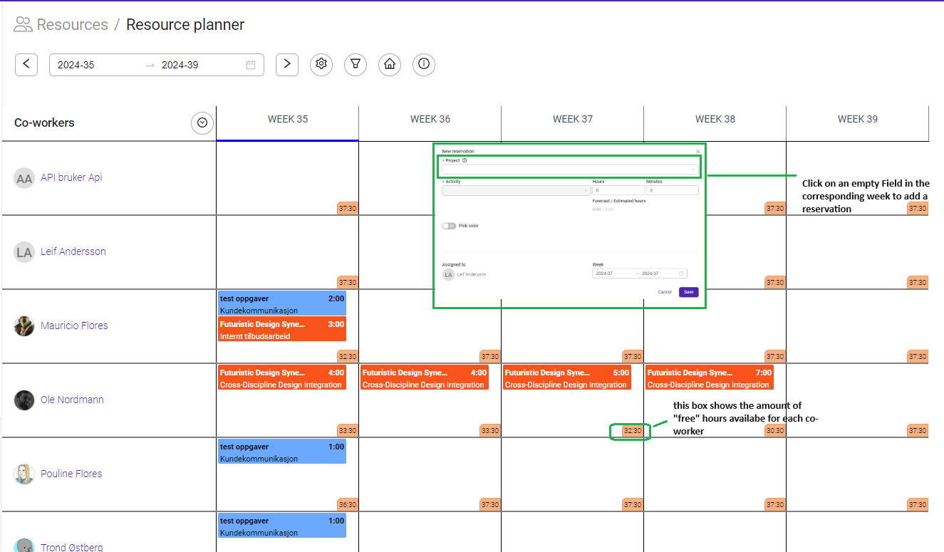 The data you add to the project plan will be fed to the rest of the program. Mainly to the Reservations page, the Resource Planner and the Capacity Overview.&#x20;