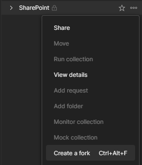 To fork this, click on the three dots to the left of the "SharePoint" name and select "Create a fork"