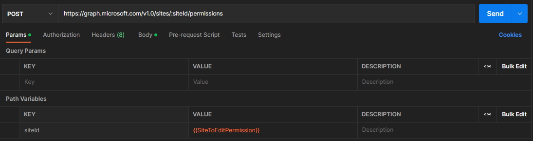 * SiteToEditPermission: This is the Site ID collected, the site where the permission is to be defined.