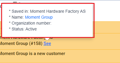 When the customer is created, and it already exists in another company in the group, info such as organization number and contact persons will be available:&#x20;