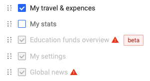 The dotted symbol next to the check box makes it possible to rearrange the position on the item in your menu. Just drag-and-drop the dotted symbol and put the item where you find it more fitting.\