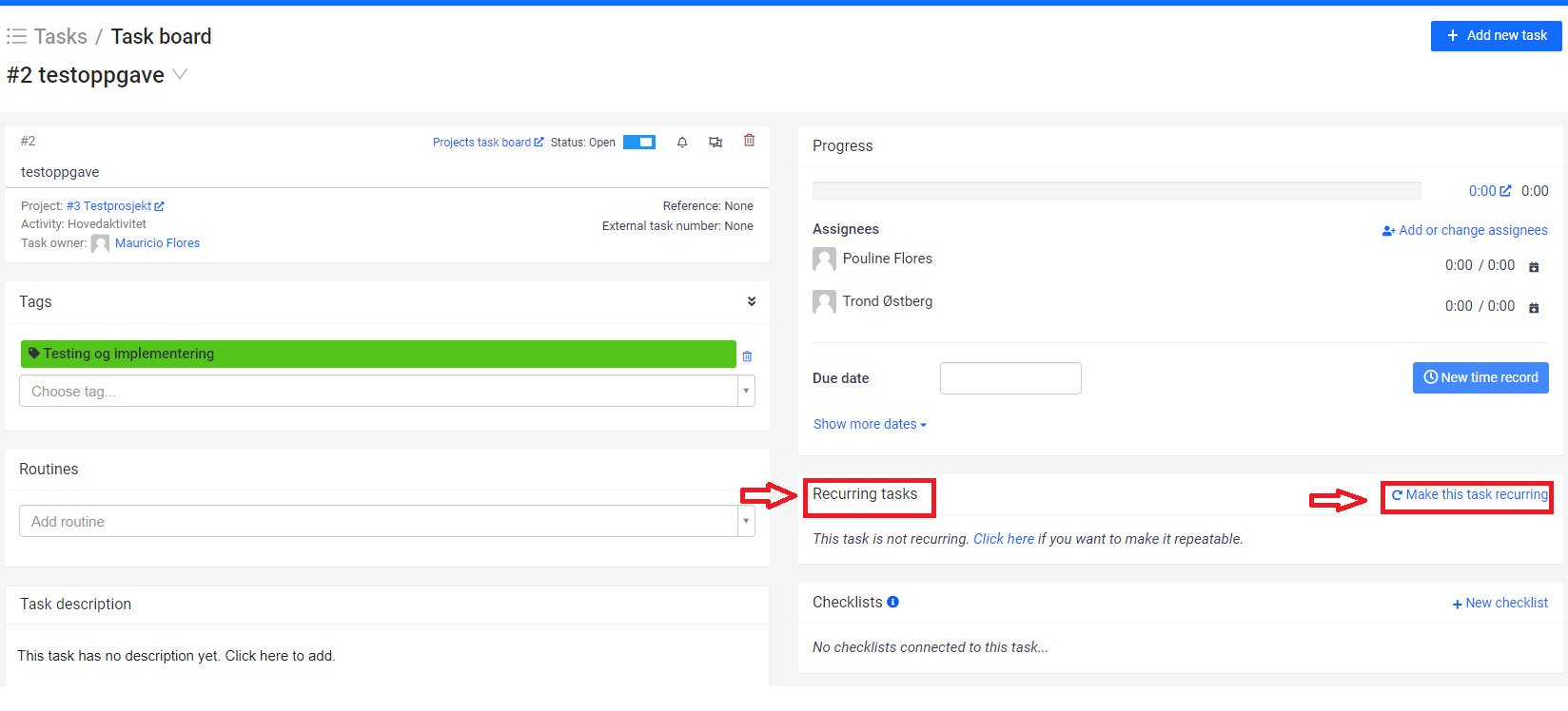 ### Basic recurring tasks settings