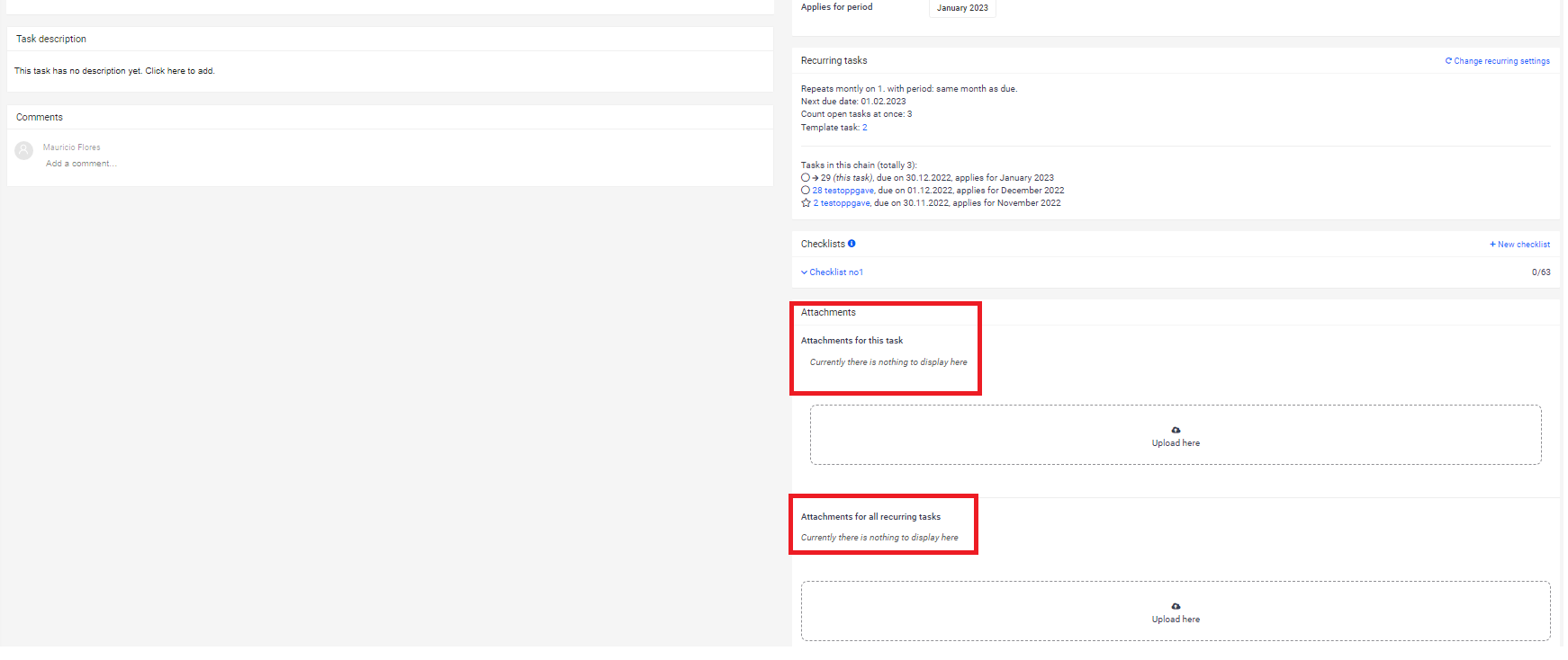 "Attachments for all recurring tasks" refers to files that will be added to all the tasks in the sequence.&#x20;